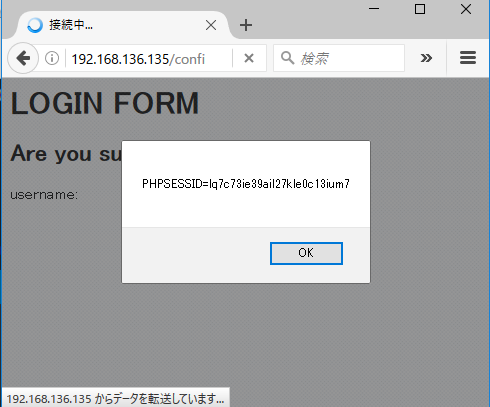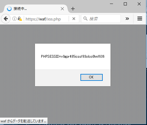 このアドレスはサーバ内にあるxss.phpページへ表示させるスクリプトです。セッションIDも引き継いでいます。